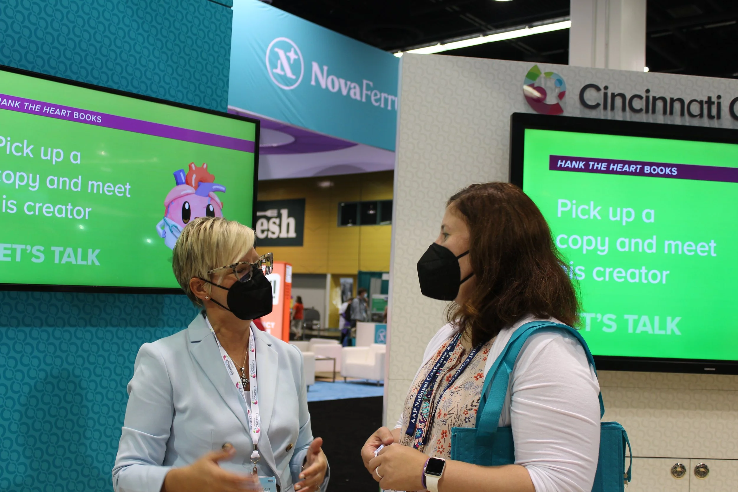 Faculty from Cincinnati Children’s met with over 2000 visitors to the exhibit booth at this year’s AAP/NCE in Anaheim, California. Being back in person in the exhibit hall was energizing and allowed the physicians to collaborate with their colleagues from all over the world. This year the booth featured physicians from numerous divisions and shared our updated PCP Support Tools app, Covid-19 Vaccination Toolkit, Hank the Heart books, (with a live author book signing from our own Dr. Ryan Moore), and of course a return of the famous branded bag. If you missed the conference this year you can visit our AAP 2022 conference microsite and access some of the shared resources.
